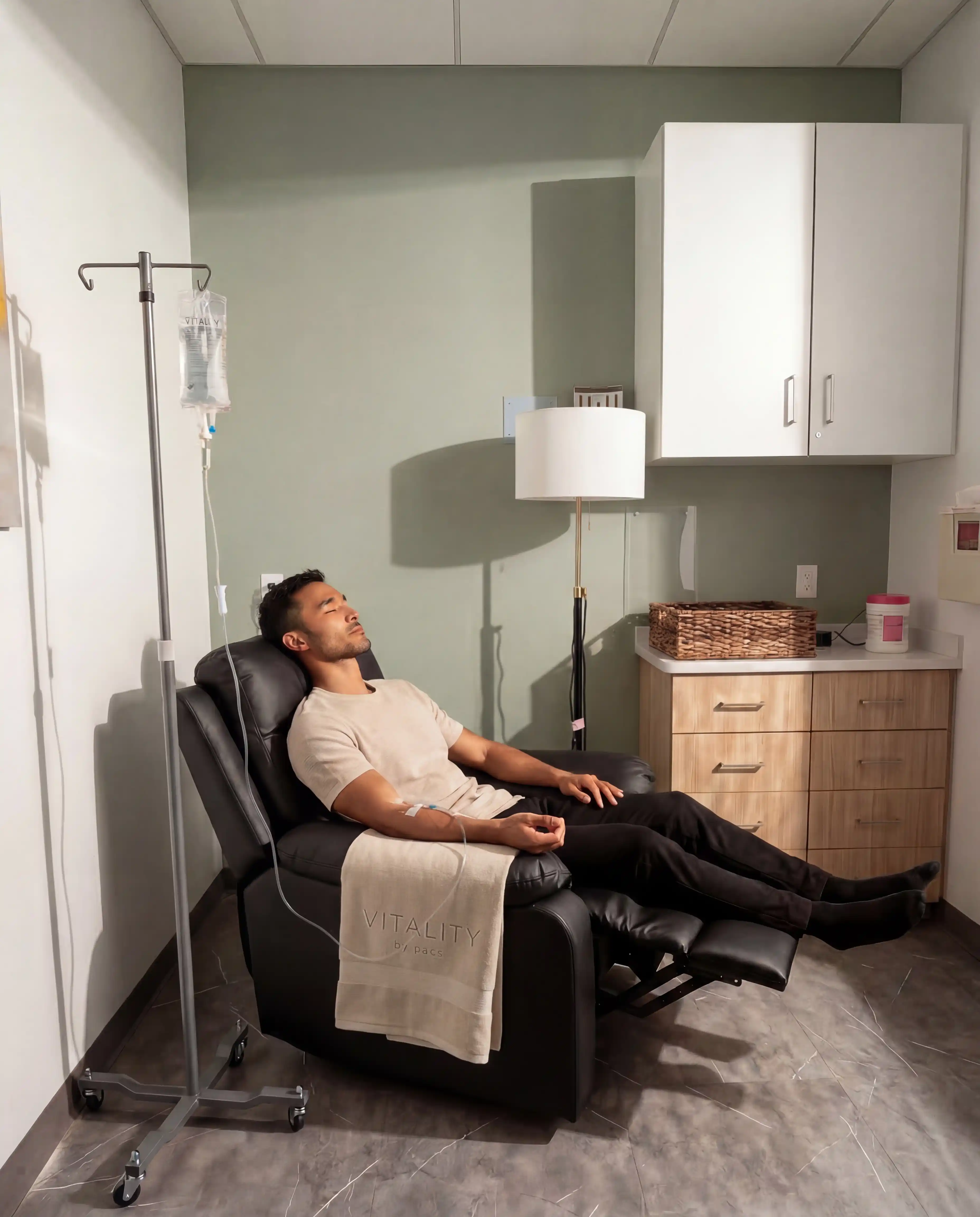 View Plans & PricingVitality operates inside PACS Urgent Care at 3481 N Beauregard St — a fully equipped medical facility with licensed physicians, digital X-ray, and lab testing on-site. This is not a pop-up IV bar or a mobile wellness van. Every treatment is administered by licensed medical professionals under physician supervision.